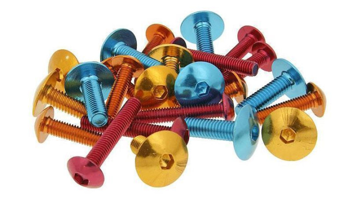 Elxoiated aluminium screws in various lengths and colours. Delivered are 6 pcs. each in the corresponding version.