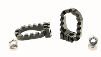 Motocross footpegs with widened contact area and improved grip. Made of CNC machined and anodized aluminum.