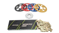Sowohl das Ritzel (14) als auch der Kettenkranz (48) entsprechen der original verbauten Größe aller Modelle bis Baujahr 2019.
